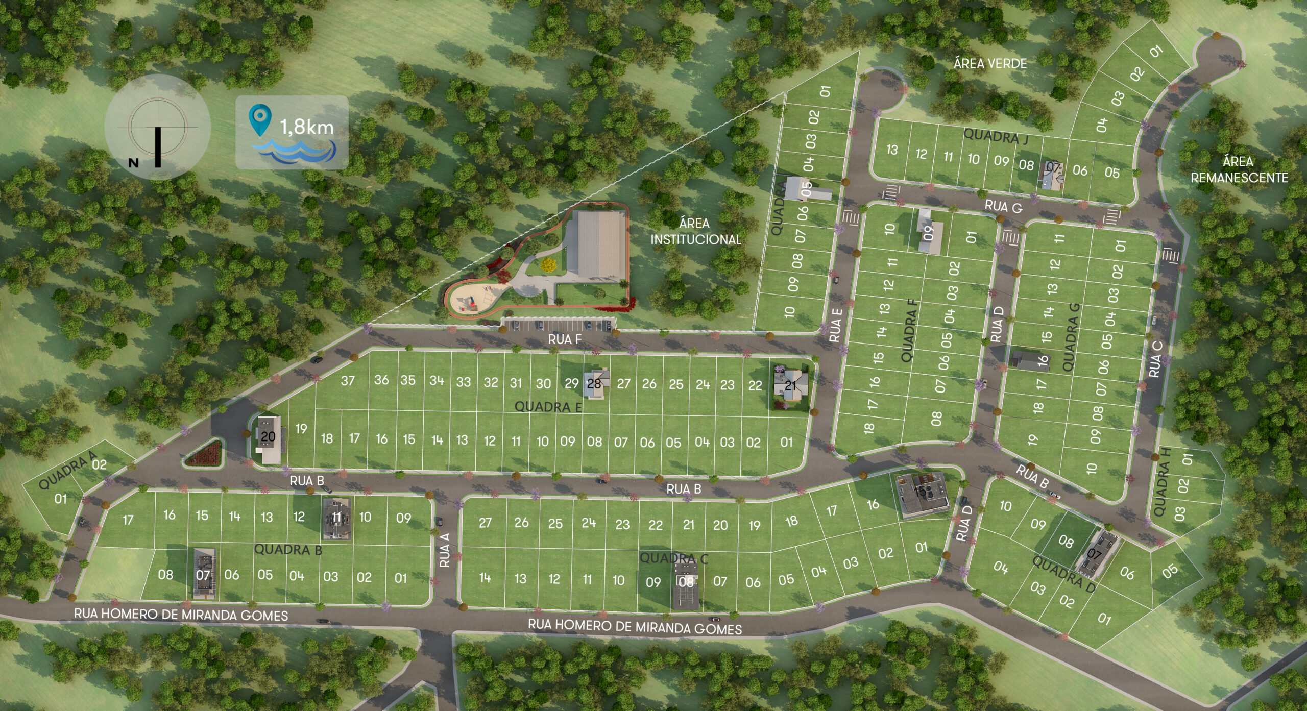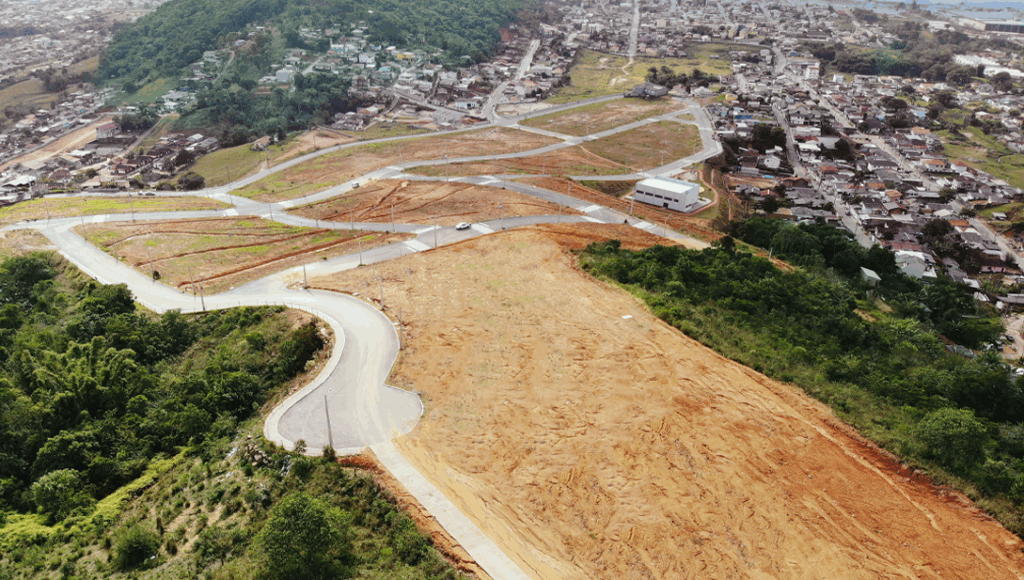 Localizado na cidade de Biguaçu, o endereço conta com 156 terrenos, opções com vista para o mar, viabilidade residencial e comercial de até 10 pavimentos, entre 360 m² e 800 m², e divididos em uma área total de 202.055,52 mil m².