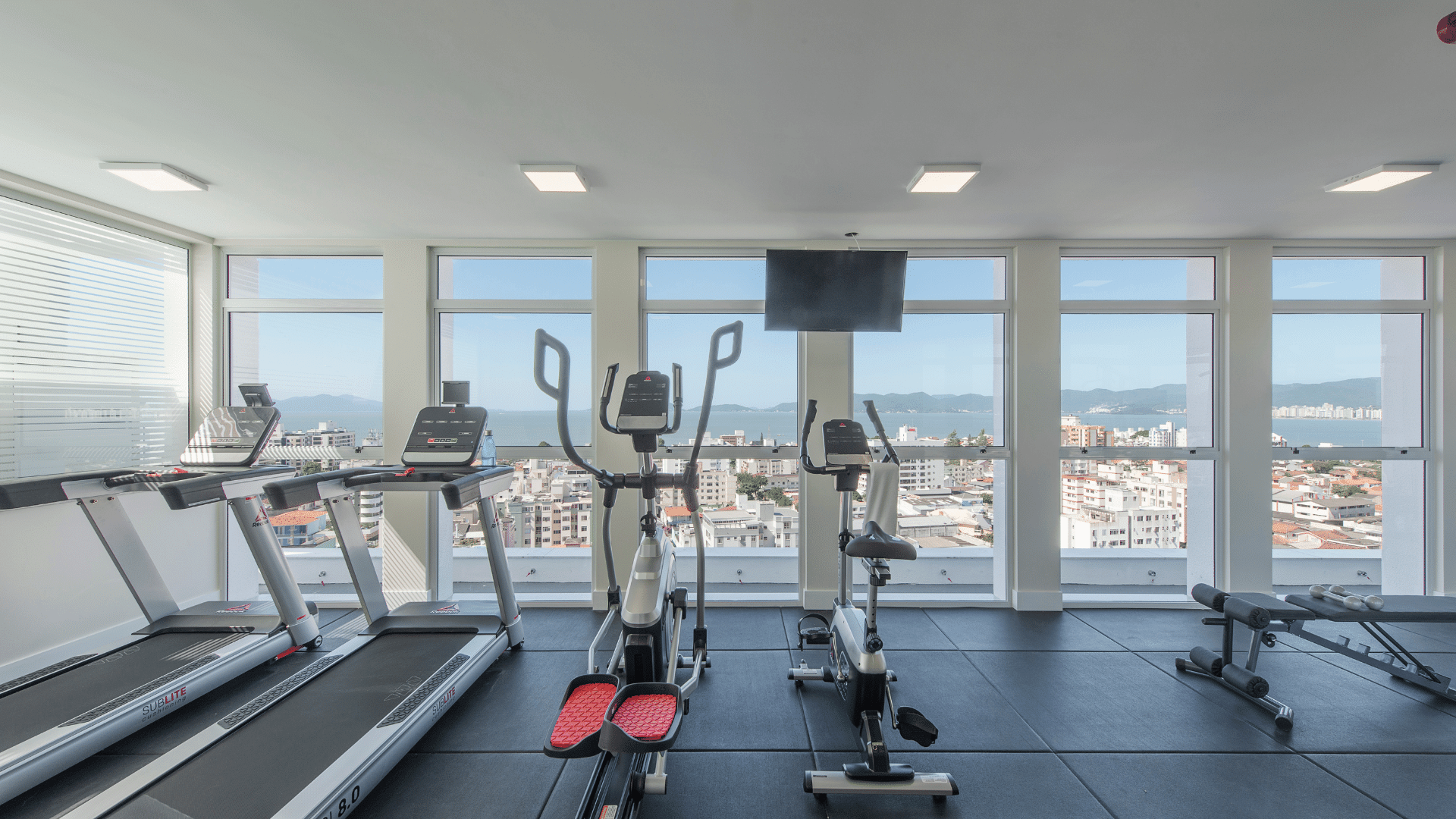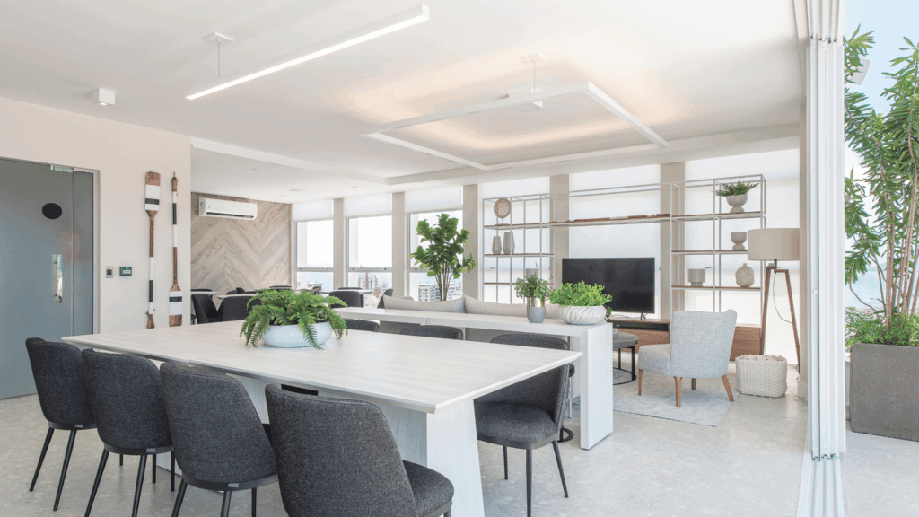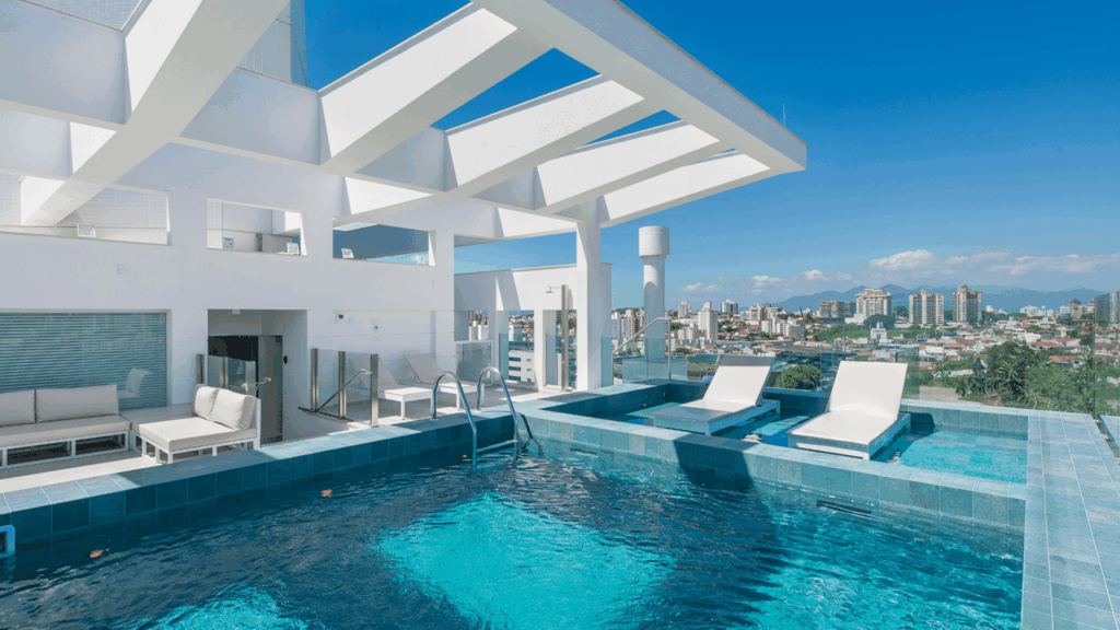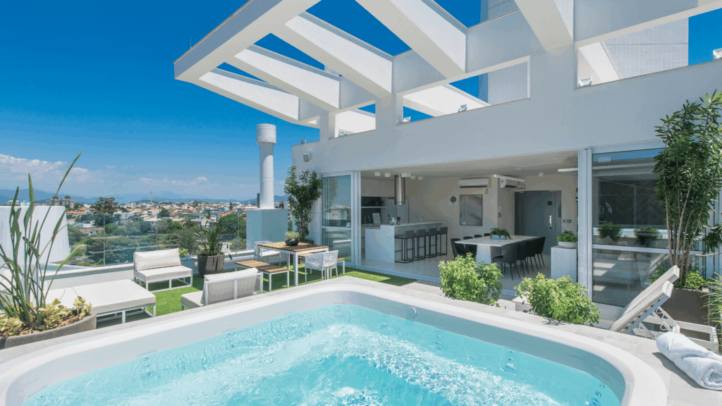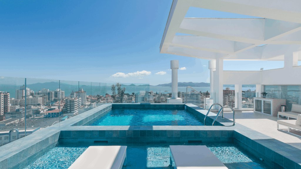 Aprecie a vista das áreas de lazer no ático: