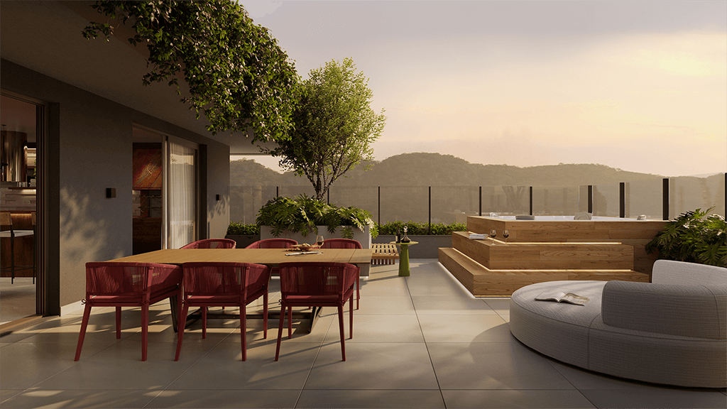 Aqui, a natureza é parte da sua vida. O projeto adota um design biofílico que privilegia a luz natural e a conexão com o verde, o empreendimento oferece varandas amplas envoltas pela vegetação, em perfeita harmonia com uma área de preservação natural.